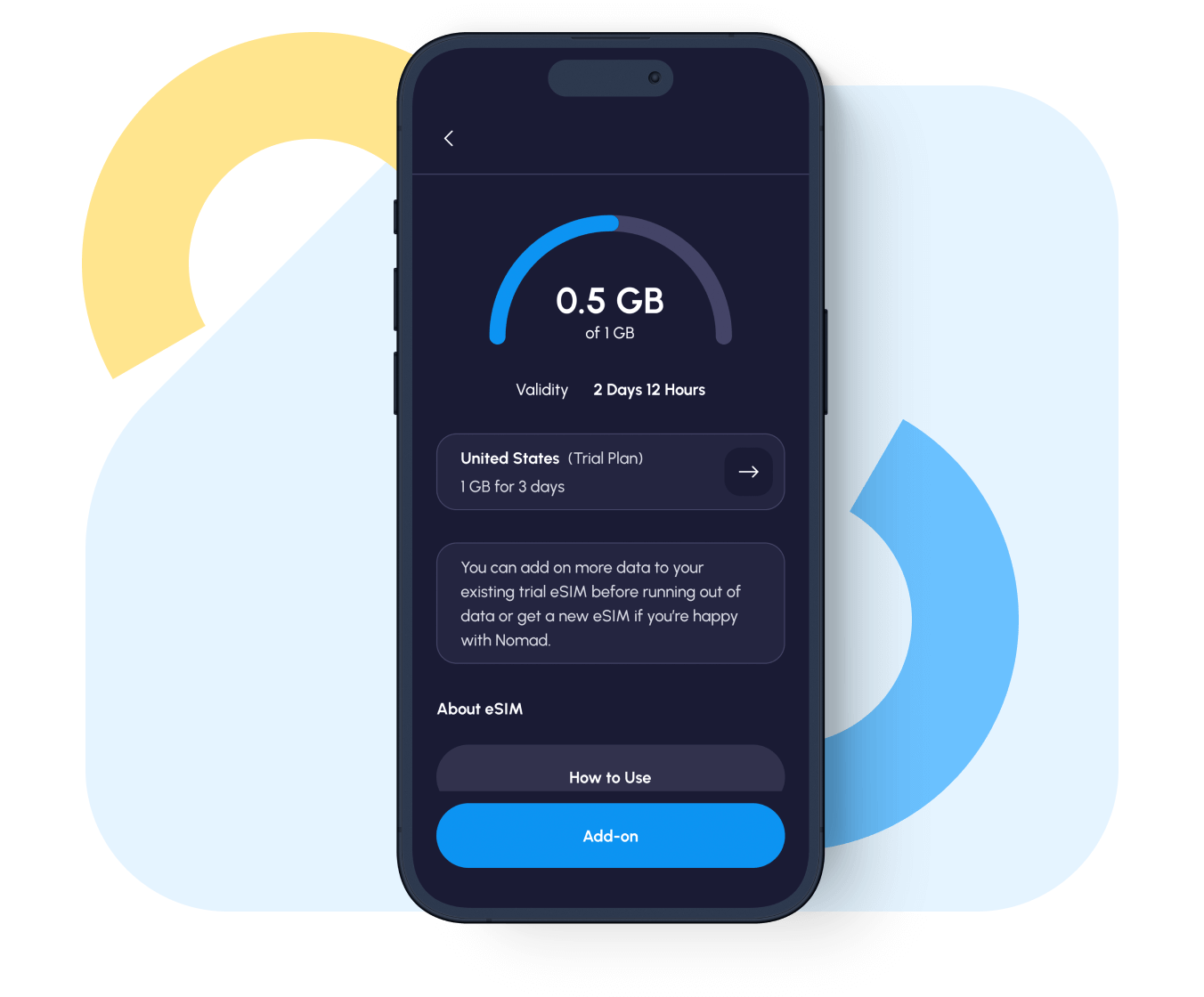 You can pay to add more data to your existing trial eSIM or or get a new eSIM if you're going to a different destination. Simply open the Nomad App and top-up your trial eSIM from the 'Manage' page.