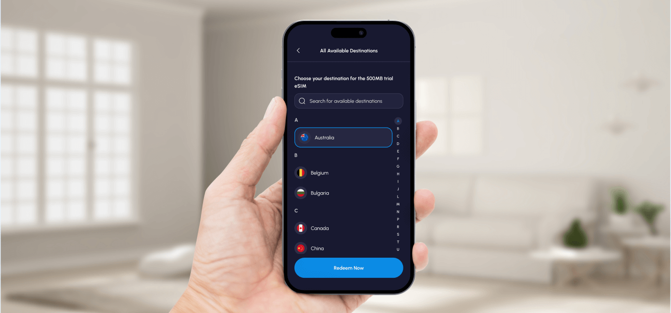 Download the Nomad app on iOS or Android to select your free 1GB eSIM data for your travel destination, or try it at home.